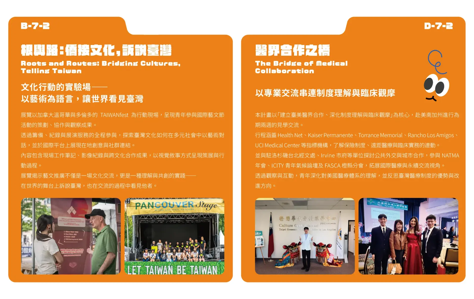 B-7-2 加拿大多藝文創新與突破 & D-7-2 醫界合作之橋 & D-7-3 台灣文化巡禮